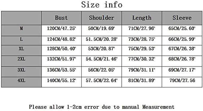Style: Casual styleThe collar was a small lapel, and the shoulders were neatly lined, so that they looked stiff and straight. Jacket front is zipper design, zipper smooth, easy to use; The cuffs and the hem of the clothes are designed with elastic mouth, warm and comfortable; The interior is made of smooth material with a layer of inner lining, giving you a good wearing experience.Delivery:We will ship out your orders within 7 business day by E-packet or other commercial post service. We have Standard Shipping service and Expedited shipping to choose.About Standard Shipping service, the packages will usually take about 7-15 business days to be delivered to you .About Expedited shipping, the packages will usually take about 4-6 business days to be delivered to you .Note1. Please allow 1-3cm differs due to manual measurement.2. Please allow little color difference due to different computers' displayer, camera or light environment.